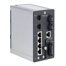 Rack-mounted industrial switch supporting high-capacity backbone networks for industrial environments.